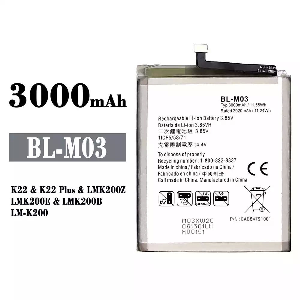 배터리 BL-M03 스마트폰 LG K22 / K22 Plus / LMK200Z / LMK200E / LMK200B / LM-K200