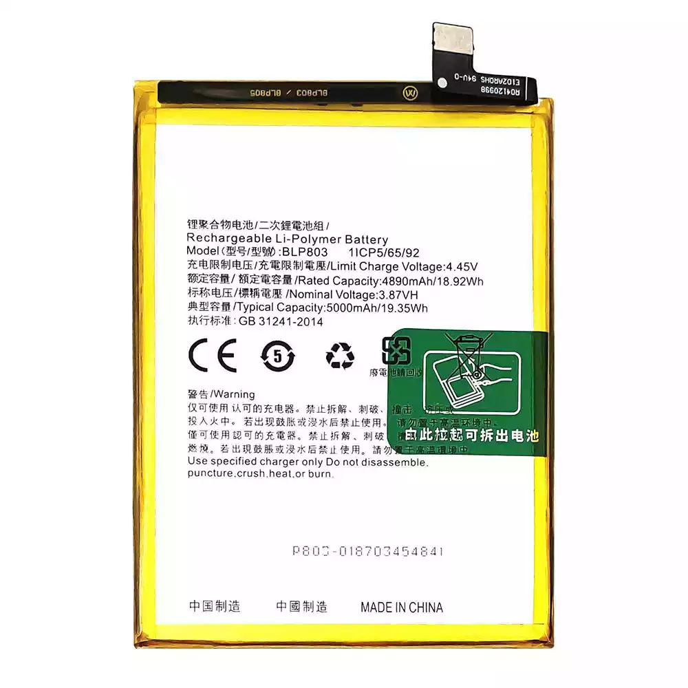 배터리 BLP803 스마트폰 OPPO Realme C17 / Realme V3 / Realme Q3i / Realme 7i / Realme Narzo 30 5G / Realme 9 / RMX3388 / Realme 8 5G / RMX3241