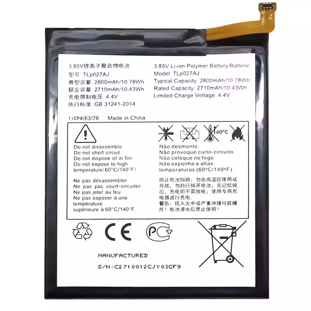 배터리 TLP027AJ 스마트폰 Alcatel A5 LED/OT5085/5085I/5085Q/5085D