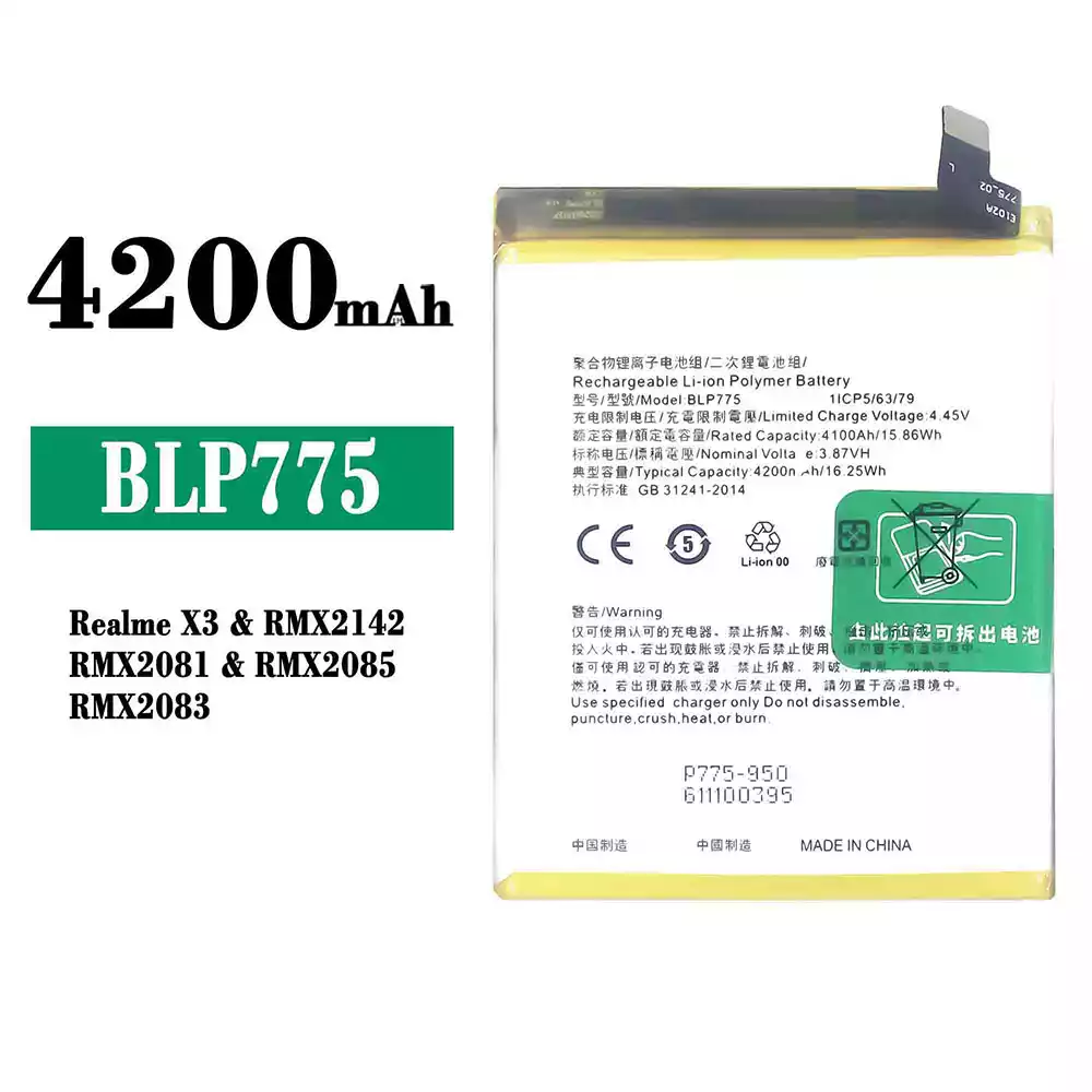 배터리 BLP775 스마트폰 OPPO Realme X3 / RMX2142 / RMX2081 / RMX2085 / RMX2083