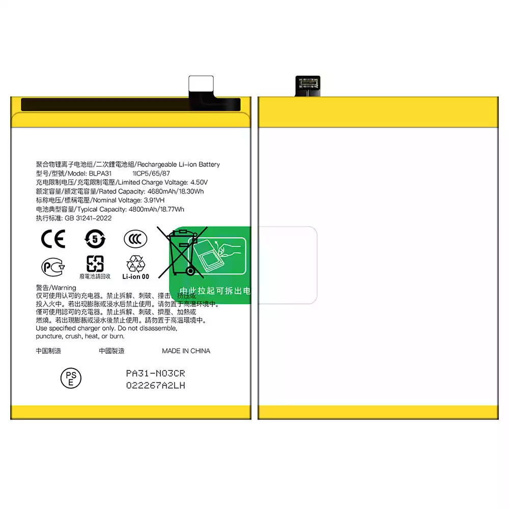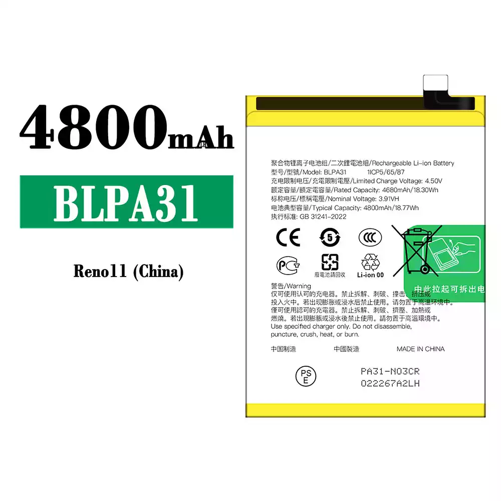 배터리 BLPA31 스마트폰 OPPO Reno 11 (China)