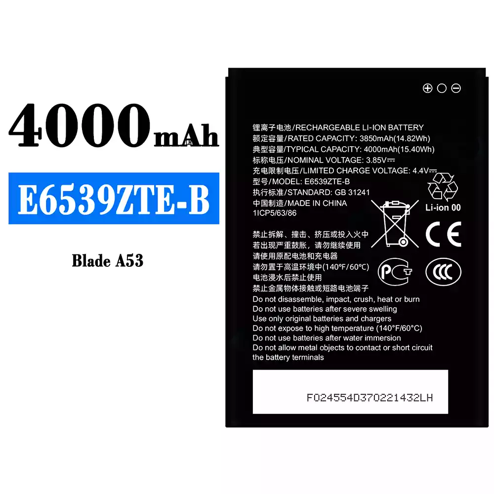 배터리 E6539ZTE-B 스마트폰 ZTE Blade A53