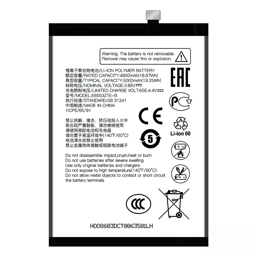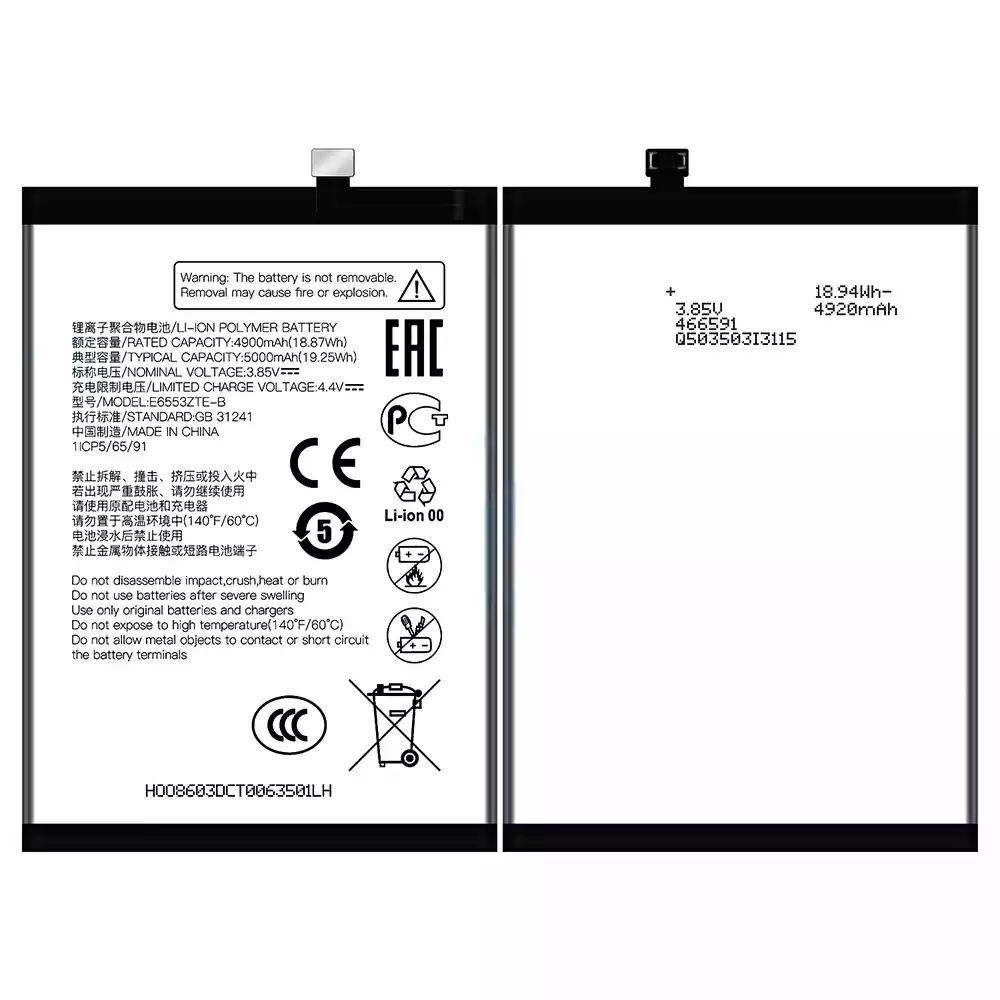 배터리 E6553ZTE-B 스마트폰 ZTE V50