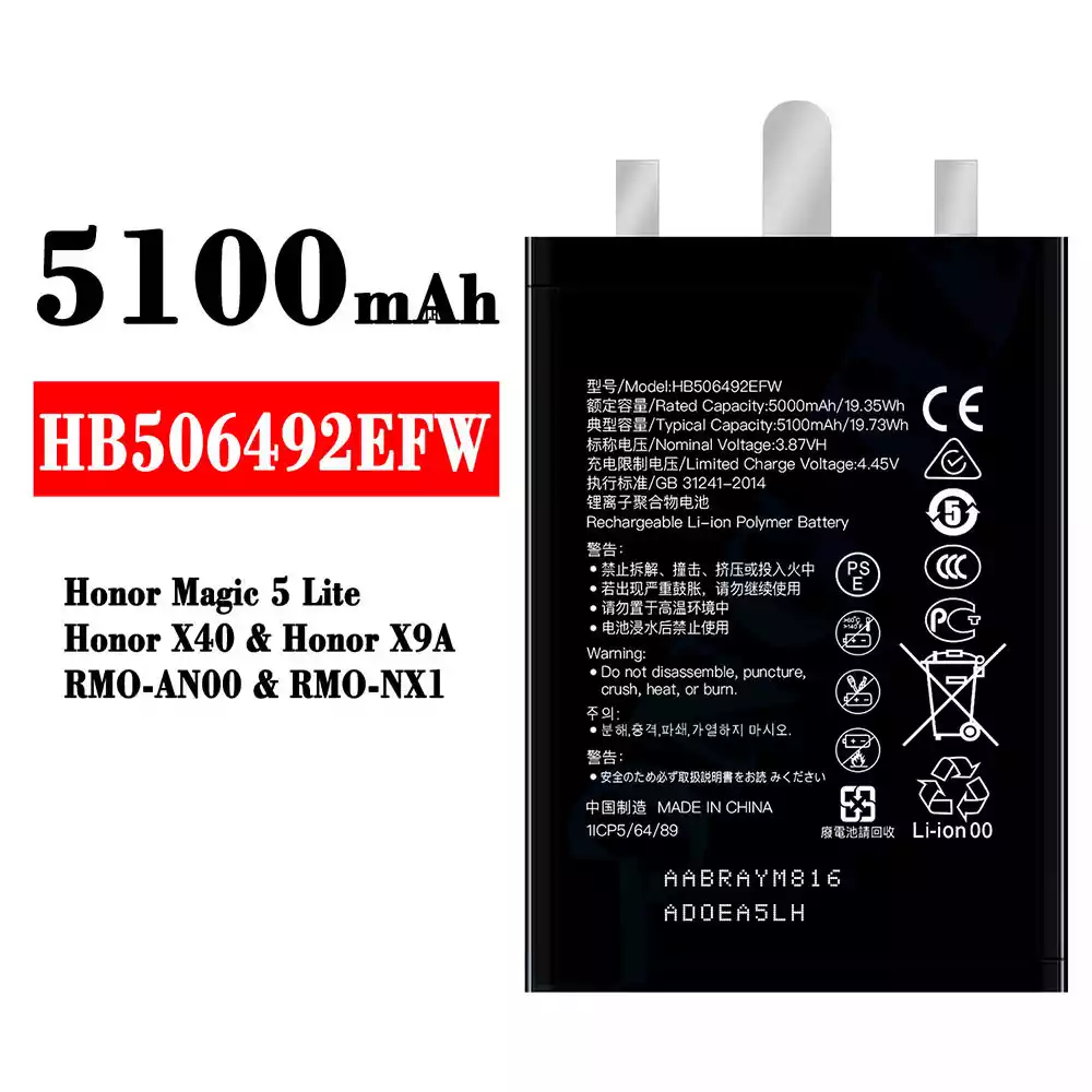 배터리 HB506492EFW 스마트폰 [화웨이] HUAWEI Honor Magic 5 Lite / Honor X40 / Honor X9A / RMO-AN00 / RMO-NX1